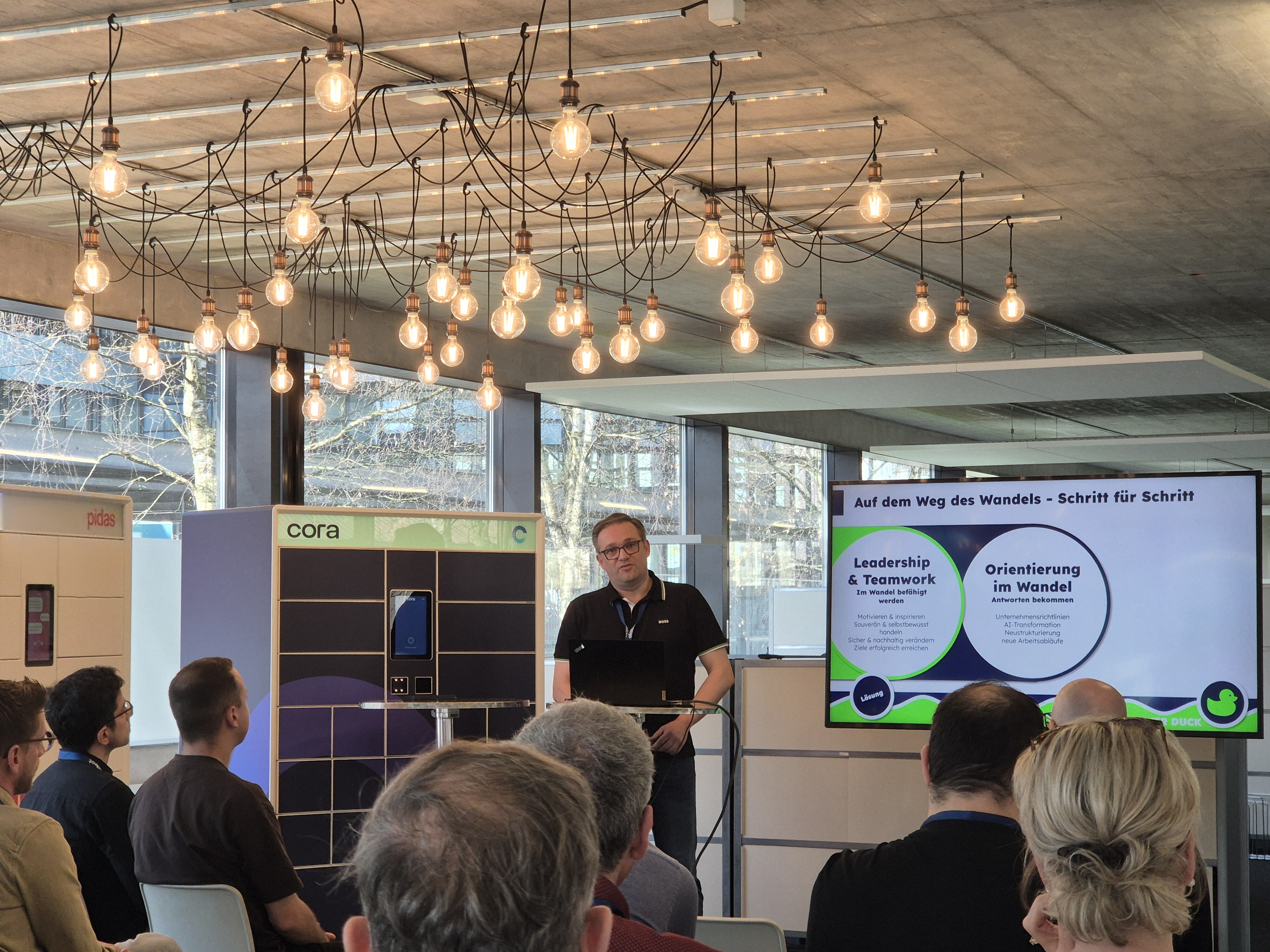 Ein weiteres Highlight folgte mit dem Use-Case von Christian Czupalla von WIN-WIN FOR WORK. In seinem praxisnahen Beitrag zum Thema „AI im Change-Management“ teilte er wertvolle Erfahrungen aus einem gemeinsamen Projekt. Mit dem POWER DUCK SOLUTION-EMPOWERMENT®-Ansatz demonstrierte er eindrucksvoll, wie Automatisierung gezielt Veränderungsprozesse unterstützt und dabei nicht nur Effizienz, sondern auch Motivation und Akzeptanz fördert.